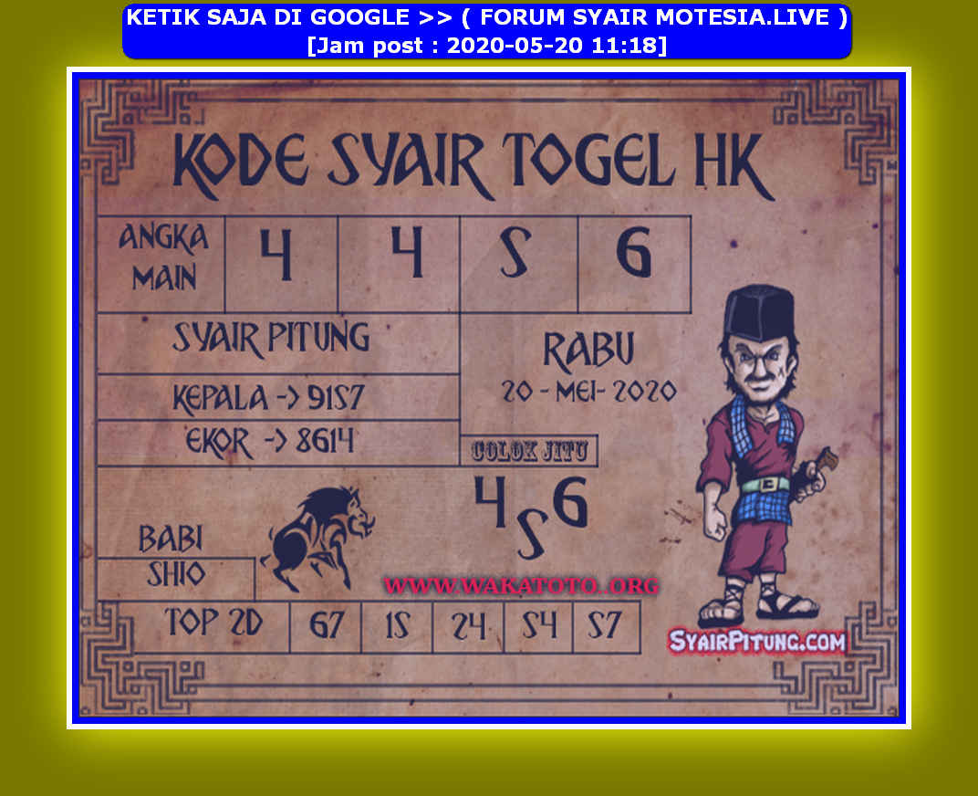 Syair HK Hari Rabu 20 Mei 2020 Royal Syair